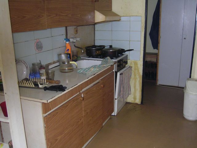 Predmet dražby sa nachádza v stredovej sekcii na štvrtom poschodí, dispozične pozostáva z dvoch obytných miestností a z príslušenstva, ktoré tvorí predsieň, kuchyňa, kúpelňa, WC, balkón a pivnica v suteréne domu. Podlahová plocha bytu s príslušenstvom, bez balkóna, je 64,30 m2. Predmet dražby je v pôvodnom stave, bez vykonaných rekonštrukcií. Bytové jadro je pôvodné typové montované umakartové, v kúpeľni je smaltovaná vaňa a otočné keramické umývadlo s jednou spoločnou obyčajnou batériou, samostatné WC je priechodné, je bez umývadla. V kuchyni je linka na báze dreva so smaltovaným drezom, obyčajnou batériou, plynovým sporákom, digestorom, za linkou sú keramické obklady. Vnútorné omietky sú vápenné hladké, podlahy lepené povlakové z PVC, okná drevené zdvojené, vykurovanie je ústredné, radiátory oceľové článkové. Dom má priemernú údržbu, čomu zodpovedá aj jeho technický stav.